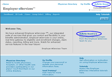 | Note: In the sample to the left, Bulletin Board (2) indicates that there are two messages. | |||